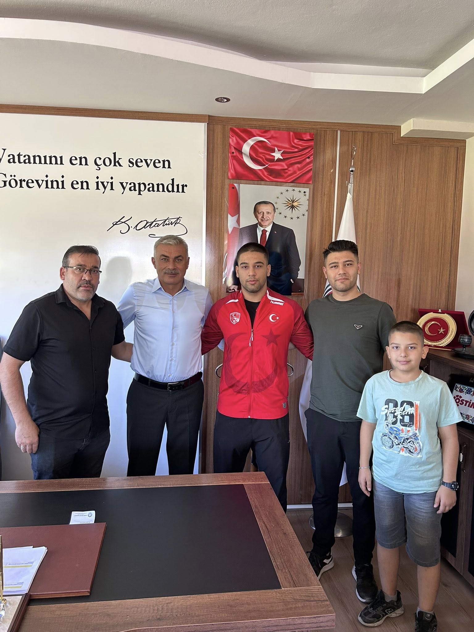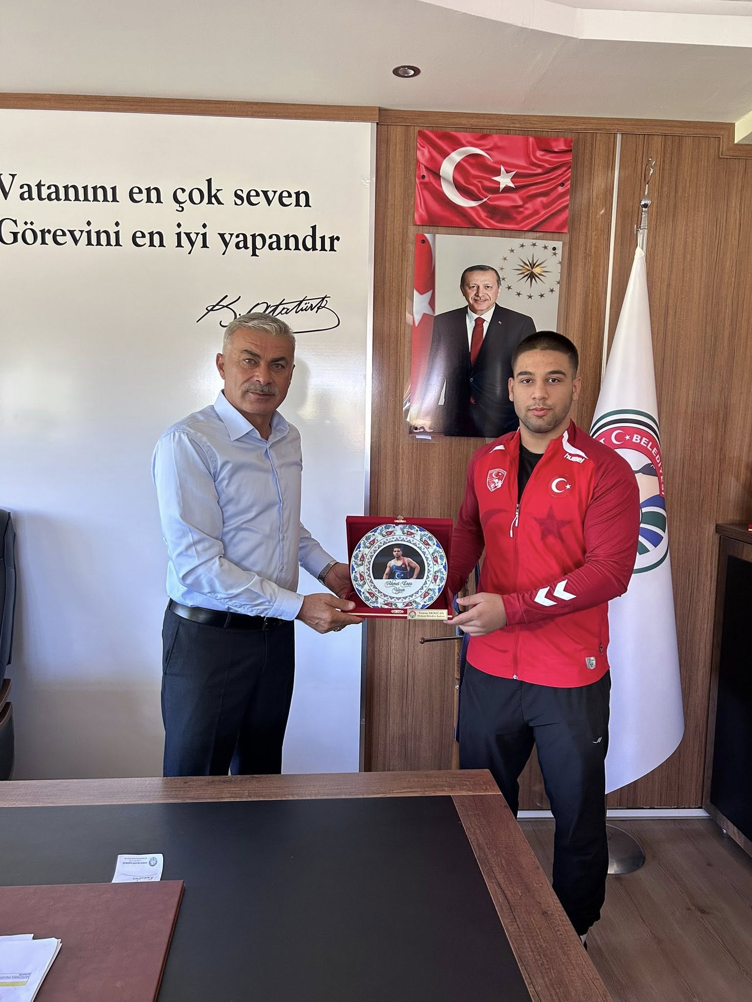 U17 Dünya Şampiyonası’nda grekoromen stil 92 kg’da Dünya Üçüncüsü olarak bronz madalya kazanan Ahmet Enes Uzun, belediyemizi ziyaret etti.
